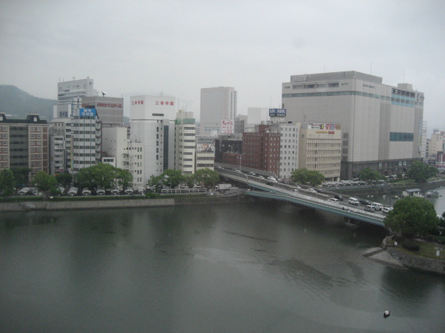 ホテルから眺めた景色は、雨でかすんで見えました。 でも、雨に霞む川と街、とても良い眺めでした。