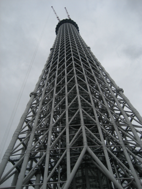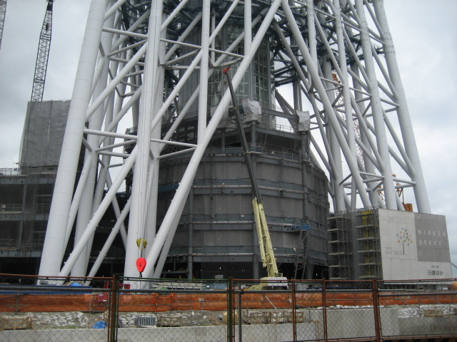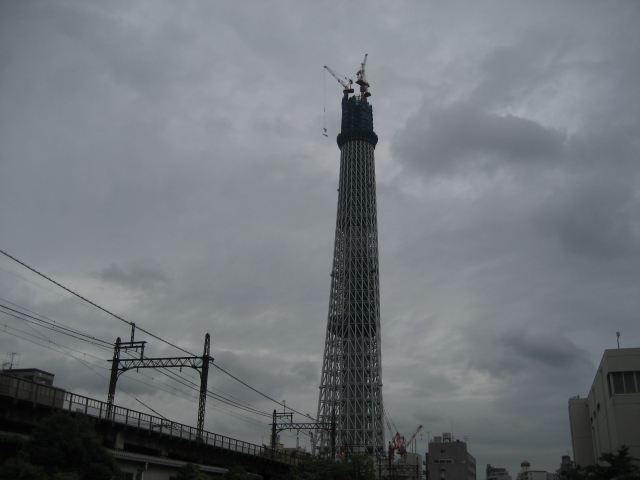 建設途中のスカイツリータワーです。本日の高さは376M。