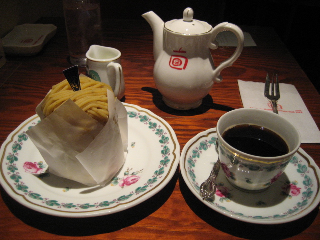 古い歴史ありそうなカフェで、こんな美味しいモンブランケーキにコーヒーでしばし、一人銀座を楽しんでおりました。