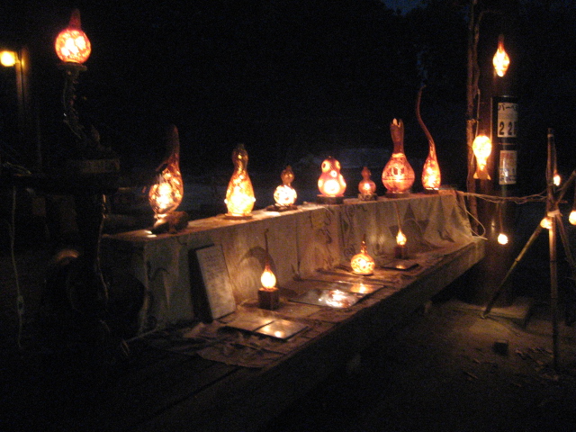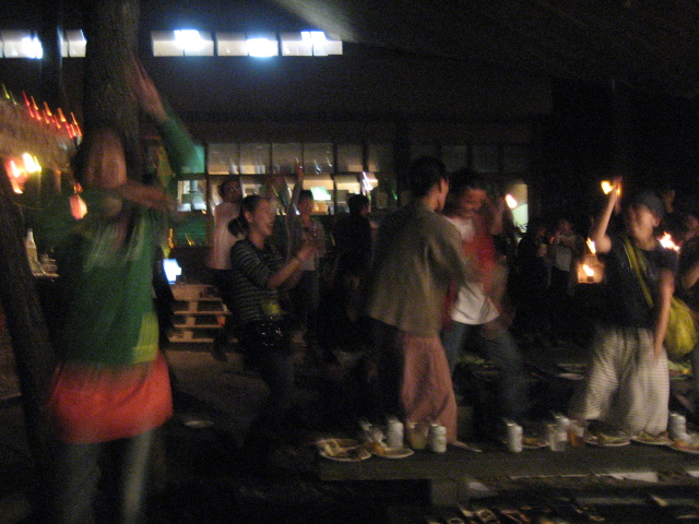 中部タイマッサネット・タイ式沙羅/名古屋 2009/10/20 合宿初日 こんばんは、名古屋のタイ古式マッサージ・タイ式オイルマッサージ・ヘッドスパ沙羅です.。 合宿初日です。 早めに現地入りした私達は、準備に大忙しでした。厨房の中、受付準備等々・・・・。 そんな中、皆様の、到着がはじまりました。 オリエンティーションから、夕食の準備へ。厨房は、明日のタイ料理の下ごしらえと夜のバーベキューの準備で大変な賑わいでした。 日も暮れ、屋台の準備も整い、楽しみな夜に突入です。 乾杯!乾杯!、お肉を焼き、野菜を焼き、食べる食べる、そして、飲む、飲む。こっちの人もあっちの人も、笑い顔で、良い顔してます。 そのうちに、さんしんと唄が、始まり、皆さんのノリは、ますます、絶好調です。 花は、はなとして~ 泣きなさ~い 笑いなさ~い、 歌声が響きます。 夜も更けているのに、炭火の周りには、まだ、沢山の人が、集っています。みんな~何時寝るの~。 そう言う、私もそこにいました。 名古屋のタイ古式マッサージは名古屋の沙羅へ。