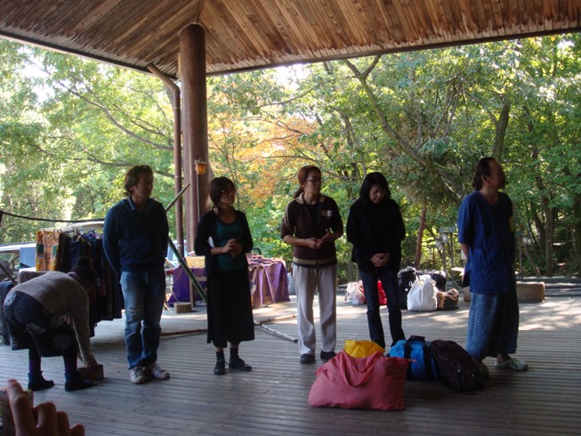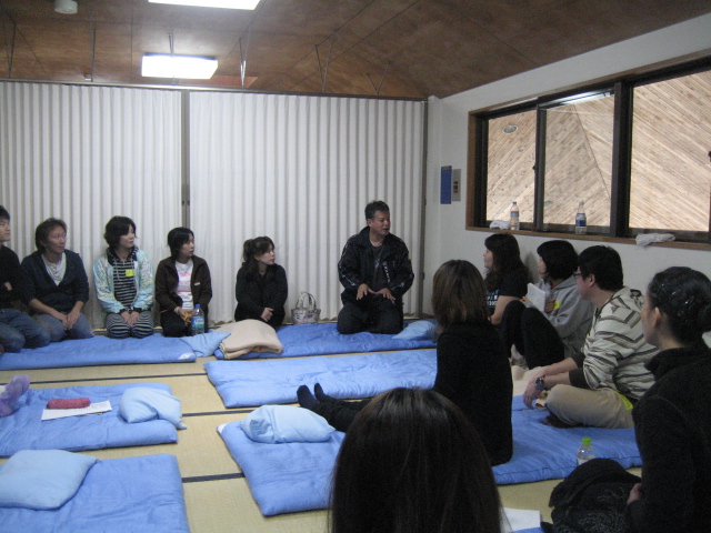 中部タイマッサネット・タイ式沙羅/名古屋 2009/10/21 合宿二日目 こんばんは、名古屋のタイ古式マッサージ・タイ式オイルマッサージ・ヘッドスパ沙羅です.。 二日目、朝は、6時から太極拳とルーシーダットンが、行われました。 私は、起きてすぐに厨房へ。既にいる、お手伝いの人の奥から 「遅~い!」 と大きな声で 叱られながら、朝ごはんのお手伝いです。 今日は、企画が目白押しで朝から目いっぱい、いきます。 それぞれが、申し込みしたセミナーを受けたりお料理教室したりと、思い思いの時間を過ごします。 夕方には、バンブーガムランでライブマッサージです。夕暮れのピロティーにマットが敷かれピリットした中でライブマッサージが、はじまりました。 美味しいお昼御飯に、夜は、タイ料理でおなかを満たし、大満足の一日が暮れようとする、最後は、ピアノと朗読で静かな夜を楽しんでもらおうと、朗読係の私もちょっと緊張しました。 でも、私は、楽しんでできたと思います。 今宵も、外で炭火にあたりながら、ロビーでお話しながら、広間で練習したり とそれぞれが、更けていく夜を、楽しんでいたのでは、ないでしょうか? あっという間に、日つけは変わり、もう、今日は、皆さんとお別れです。 名古屋のタイ古式マッサージは名古屋の沙羅へ。
