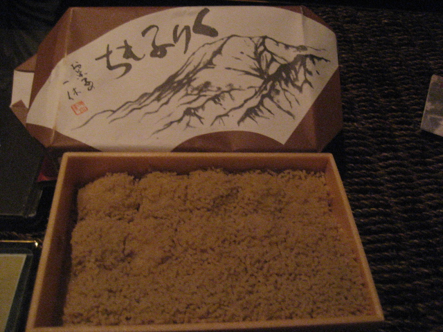 今日の出来事/タイ式沙羅/名古屋 2009/10/26 頂きました~。 こんにちは、名古屋のタイ古式マッサージ・タイ式オイルマッサージ・ヘッドスパ沙羅です.。 お店で、しばらくご来店のないお客様の事が話題に上る事があります。お元気だろうか?とか、とか・・・・。 そんな、場合、ビックリするほどその後、すぐにご来店頂ける事が、あります。 それは、とても嬉しいことなので、何時も、そんなお話してみようか?なんて事になります。 昨日は、そんな、話題に上った、少し久しぶりのお客様が、お見えになりました。何時もお土産頂いてしまうのですが、昨日も中津川の「くりこもち」を頂きました。これまた、美味しい~。 その、頂いたくりこもちを買いに昨日は、中津川まで行って来たそうです。 何時もいつも ありがとうございます。 名古屋のタイ古式マッサージは名古屋の沙羅へ。 PR