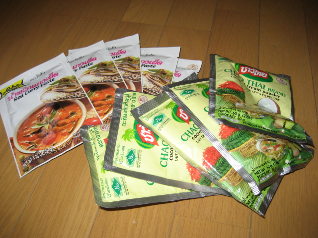 タイ式マッサージ沙羅/名古屋 2009/08/24 仕入れは、 こんばんは、名古屋のタイ古式マッサージ・タイ式オイルマッサージ・ヘッドスパ沙羅です。 暑い!昨日、ぼやけた季節?と書いたばかりですが、今日の日差しは、暑かったです。涼やかな風に少し救われました。 何故暑かったのですか? 午後に、日赤病院までお見舞いに出かけたからです。日赤病院は、地下鉄で八事駅の一つ向こうです。行きは地下鉄、帰りは、歩きました。往復歩きな「さい!!」 歩きだして、暑さにうんざりでしたが、久しぶりに通りを眺めながら、ぶらぶらと歩きました。木陰に来る度に遮られた太陽の影と光の違いを実感しました。 これで、多分、顔にはシミが、いっぱい・・・・・・・。う、う~ せっかく美白にガンバッテいるのに・・・。 昨日は、頂き物の美味だったんですが、実は、タイ語講師のニパさんから、もうひとつ嬉しい物を頂いていました。 お土産のタイカレーペーストにココナッツパウダーです。7月の沙羅練習合宿でタイカレーを作った時に、持っていたペーストもパウダーも全部使ってしまったので、このお土産は、とても嬉しいのです。 実は~、前のも頂いたものでした・・・。何時も、ありがとうございます。 次は、何時,タイカレー作る事に? 皆さんにも食べて貰いたいので、今年と一緒で、来年の1月10日は、恒例 「タイカレー開き」 決定ー! でも、その前に、このカレーペースト&ココナッツパウダーは無くなると思います。 と言う事は、「はい、」私がタイに仕入れに行きたいと思います。 値段の高い、タイカレーですね~。
