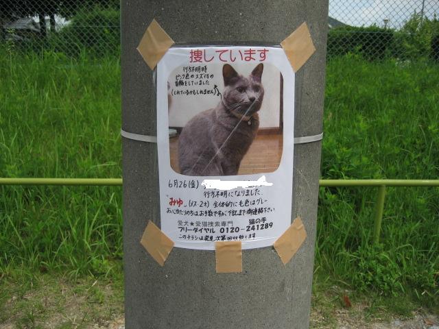 今日の出来事/タイ式沙羅/名古屋 2009/07/16 捜索依頼は? こんばんは、名古屋のタイ古式マッサージ・タイ式オイルマッサージ・ヘッドスパ沙羅です。 明日で、タイ古式マッサージ集中スクールも終わります。お店はお休みですが、この1週間の成果を見せて頂く、為に出かけます。遠くから泊まり込みで頑張ってもらいました。 家の前の電柱に張り紙がありました。可愛いネコちゃんの捜索ポスターです。 お家の方の心配を思うと胸が、詰まります。今。何処に居るのだろう?ご飯は、食べているのだろうか? 怪我していないだろうか?野良猫ちゃんにやっつけられていないだろうか?等々・・・・・。 心が休まらない日々を送っていると思います。 6月に居なくなったようで、既に1か月経っています。この、「ネコの手」さんと言う会社さんに捜索依頼をお願いしたのも藁をも掴む気持ちでしょう。 先日、家の前を通りがかっている1匹の猫ちゃんの向こうに黒い影が・・・・ひょっとして、と 車を止めて探しに行きましたが、姿が見えなくなっていました。 残念! 早く、早く見つかって、飼い主の元に戻してあげる事 (戻れる事) を、心から願わずにいられません。