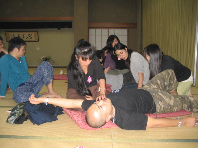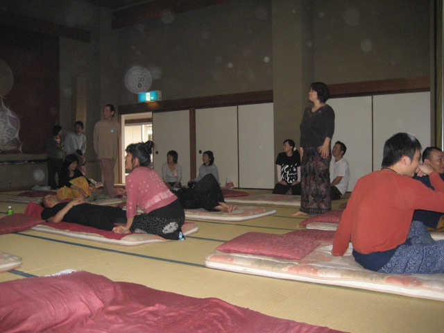 タイ式マッサージ沙羅/名古屋 2008/11/08 シバゴ合宿・2 こんばんは、名古屋のタイ式マッサージ沙羅です。 昨日の記事の続きです。 合宿2日目、午前中は、経営者ミーティング、午後は、毎年の恒例となっているライブマッサージです。今年は、ガンガーサンガさんのインド舞踊・シタール・タブラの演奏です。大広間一杯に敷かれた布団に二人ひと組になって、音が流れ始めるのを待っています。ライブタイ式マッサージの始まりです。 二人で組んでいるので、私は、我儘言って先に受けさせて貰いました。「気持ちい~い」「気持ちい~い」次には、「眠ってはいけない」「眠ってはいけない」と思いながらも、いつの間にか眠りにおちていました。声をかけられて我に返りました。ちょっと照れ臭かったで~す。眠りの中は、本当に真っ白な世界でした。 交替して次の施術は、私の番です。音に乗りいい感じで施術する事ができました。 昨夜、遅くまで話に夢中になっていたにも関わらず、う~ん。皆、さすがです。早朝のITMヨガに参加してます。 自然がうたい文句の島で食するものは、野菜中心のデトックス食です。 ライブマッサージが始まる前です。やっている所は、残念ながら写真が撮れていません。私も参加ですから。 夜のバーベキュー場へ現れた、たぬきさん。この朝も朝食会場に来てました。たぬきは、夜行性ですよね。?? この時は3匹できてた、可愛い! 返りの船に乗る前の集合写真です。全員ではありませんが、いい感じで撮れていました。 皆さん、とても熱心に練習してます。始まると止まらないです。それぞれが、色々な技に興味深々です。 若者たちは、部屋に帰ってからも1室に集まり深夜3時頃まで練習していたとい言うのですからビックリです。 私は?と言うと別室でオジサン、オバサンの話題で盛り上がっていたのです。 あっという間に2泊が終わり、最終日は、皆、揃ってミーティング後、解散です。日常の仕事から離れて楽しみ学び、久しぶりに規則正しい食事をとる事ができました。 来年は、名古屋で開催に決まりました。今回の合宿のように参加の皆様と一緒に感動出来るような時を作れたらと思います。東海地区のタイ式マッサージ仲間達!大集合!沢山の皆様のご協力をお願いいたします。