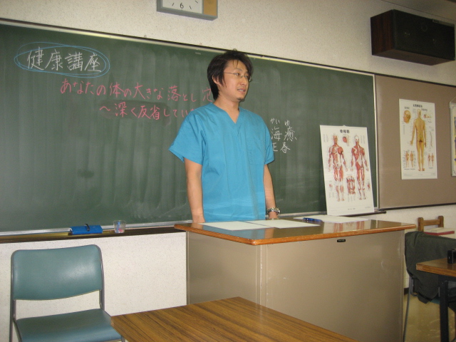 タイ式マッサージ沙羅/名古屋 2011/11/25 健康講座/海癒さん こんばんは、名古屋のタイ式・タイ古式マッサージ沙羅です。 だれでも、健康になりたいし健康を維持したいに違いないと思います。 そんな、人にピッタリの健康講座に行ってきました。 講師は、整体院 海癒の院長 ひびの正春さん HP: http://www.riraku-hb.com/ 今日は、健康講座、第1回めです。 2回目が、来年1月21日(土)にあります。 腰って~背骨の話で始まり 良い姿勢とは そして、負の連鎖は、痛み ⇒ ゆがみ 背骨・骨盤 ⇒神経の圧迫 ⇒ 血流が悪くなる ⇒ 筋肉のコリ ⇒ 痛み ⇒ ゆがみ くるくる繰り返されるので、その何処かで対処しなければ、永遠に続く そこで、ゆがみを直す(骨盤矯正・背骨)矯正が必要という事になります。 大腰筋の鍛え方 足裏の筋幕をテニスボールで刺激する やはり、話を聞いているだけでなく、自分の身体を使って動かしてみるのが、面白いと思いました。 特にテニスボールを足裏で踏みつけてくるくるコロがすの気持ち良かったです~。 講座が、無料なのにテニスボールまでお土産に頂きました。 実感!! ↓ ↓ ↓ 最初に立って前屈して、足裏ころころした後にもう一度、前屈.。あら、不思議、柔らかくなっています。 足裏の筋膜を緩める事で全身が、緩むんですね。 ↑ ↑ ↑ ぜ~んぶ 勉強になりました。 今、机の下でテニスボールコロコロしてますが、やっぱり、立ってやるのが一番、テレビみながら手を後ろに組んでコロコロすると良い感じですう。 余分ですが、ひびの先生、何回かお会いしてます。 改めて良い男だし、(コレ、ホント余分)真面目で優しいオーラいっぱいの人でした。 先生、今日は、ありがとうございました。 Yahooロコプレイス