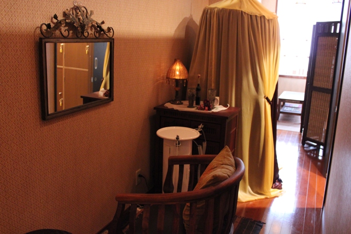 タイ式マッサージ沙羅/名古屋 2011/10/05 ほうれい線はね・・。 こんばんは、名古屋のタイ・タイ古式マッサージ沙羅です。 沢山、お話ししました。 知らなかった事、しりました。 今日、炭酸フェイシャルマッサージを受けて頂いたお客様の施術時間が、どんどん伸びて・・・。 この炭酸フェイシャルマッサージは、「沙羅サーラ」でさせて頂いています。 「沙羅サーラ」 って?? 2007年に沙羅店舗の一軒隣に小さなお店を作りました。 ↓ ↓ ↓ ↓ ↓ タイ式オイルマッサージとハーブテントのコースを増設しました。 その後、炭酸ヘッドスパ、炭酸フェイシャルコースを合わせ 沙羅サーラの全メニューとなり、現在に至っております。 フェイシャルをしながら、ず~とお話ししておりました。 パック中もず~とお話ししてました。 結果、最初から最後、終わるまで、そして、終わってお茶しながらも、ず~~とお喋りしてました。 お客様からお話しをお聞きするのは、楽しいですが、 少し、ゆったり~、まったり~しなくてもいいのかなあ~と心配になりました。 でも、そのお話しが、また面白いのです。 若さを保つために色んな事をしていらしたとか・・・。 美のプロフェッショナルです。 最後には、ほうれい線を消すには、こうするのよ!とか・・・。 たるみをなくすには、こうするといいのよ! 要は、頭皮のマッサージね、「たてたて、よこよこ」 ね。 「え~!!そうなんですかあ~。」 私、フェシャルマッサージしながら、お顔の若さの保ち方など聞いていました。 ん?? これ? ちょっと、へん?? でもお~、教えて貰ったほうれい線の取り方、早速やってみちゃいます。 得した気分の私、今を維持するために・・・チャレンジ!!あるのみ!! Yahooロコプレイス