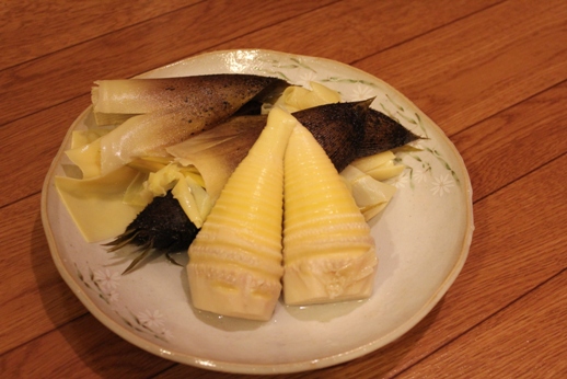 鍋にタケノコ入れて、今、茹でたばかりだから、熱いからと言いながら、その、タケノコを下さったのです。ゆでたての香りが、良い香りです。