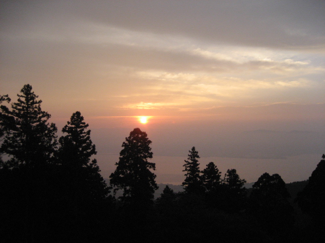 座禅からの帰り、雲の間から登る太陽にしばし感動!!